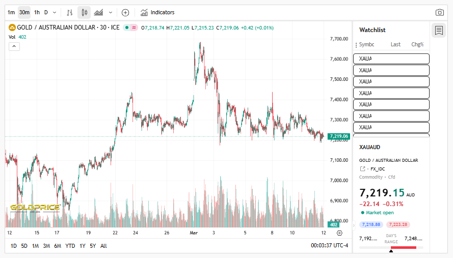 Note: This chart reflects gold and silver prices up to 12ᵗʰ March 2026.Prices change frequently, kindly view the latest updates on our live gold and silver price tracker.